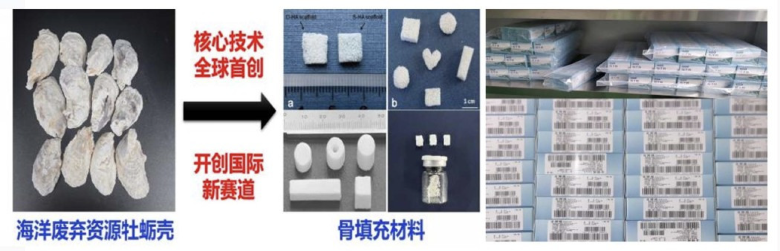 “骨填充材料”突破了傳統骨修複産品取材難、排異和降解難等局限,打破了該類産品被進口壟斷的困境,顯著提升了我國骨修複材料的國際競争力,高度契合習總書記建設海洋強國,努力突破制約海洋經濟發展和海洋生态保護的科技瓶頸和關鍵技術要靠我們自主來研發的信念。